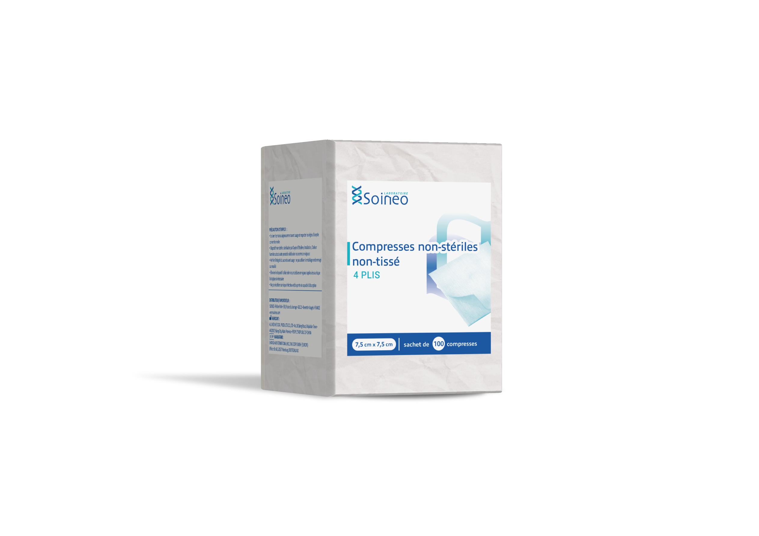 COMPRESSES NON STÉRILES non tissées 4 plis 7.5 x 7.5cm boite de 100