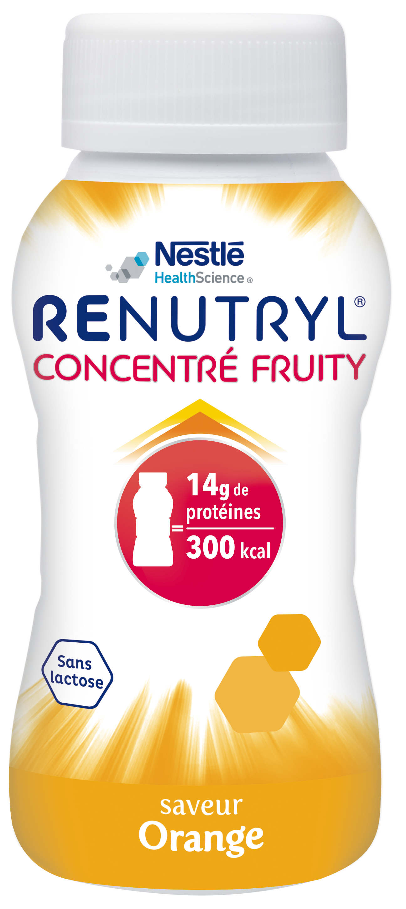 Les boissons saveurs fruitées RENUTRYL® Concentré Fruity sont des compléments nutritionnels oraux, des produits concentrés en protéines et énergie.