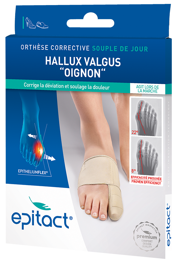 L'orthèse corrective Epitact corrige et aide à réduire l'évolution de l'hallux valgus. Cette orthèse est souple ce qui lui permet de s'adapter à tous les types de chaussures et d'avoir une meilleure sensation. Celle-ci réduit également les douleurs articulaires.