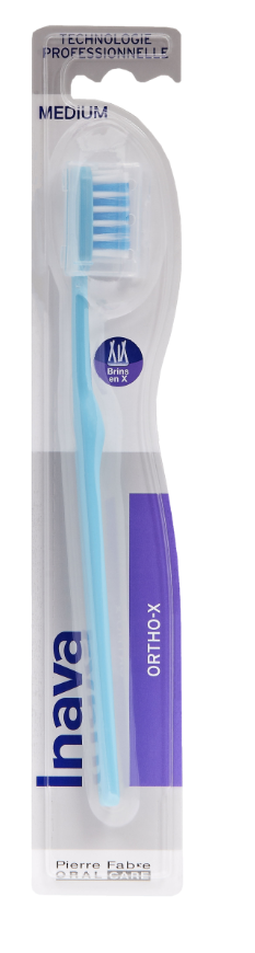 La brosse à dents Ortho-X Médium est recommandée pour l'hygiène dentaire des dents appareillées. Cette brosse à dents innovante permet d'éliminer en profondeur les résidus alimentaires et d'atteindre les zones difficiles d'accès.