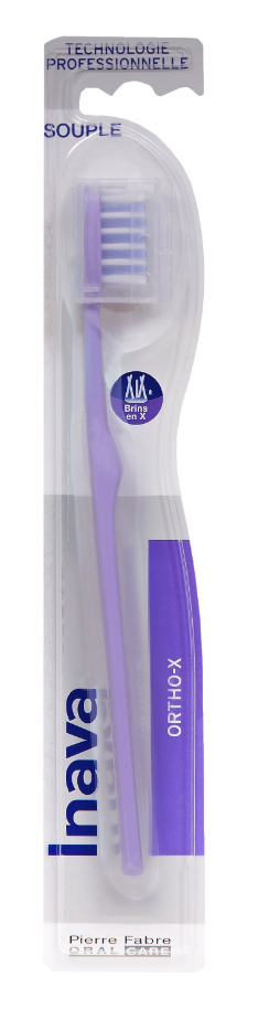 La brosse à dents Ortho-X Souple est recommandée pour l'hygiène dentaire des dents appareillées. Cette brosse à dents innovante permet d'éliminer en profondeur les résidus alimentaires et d'atteindre les zones difficiles d'accès.