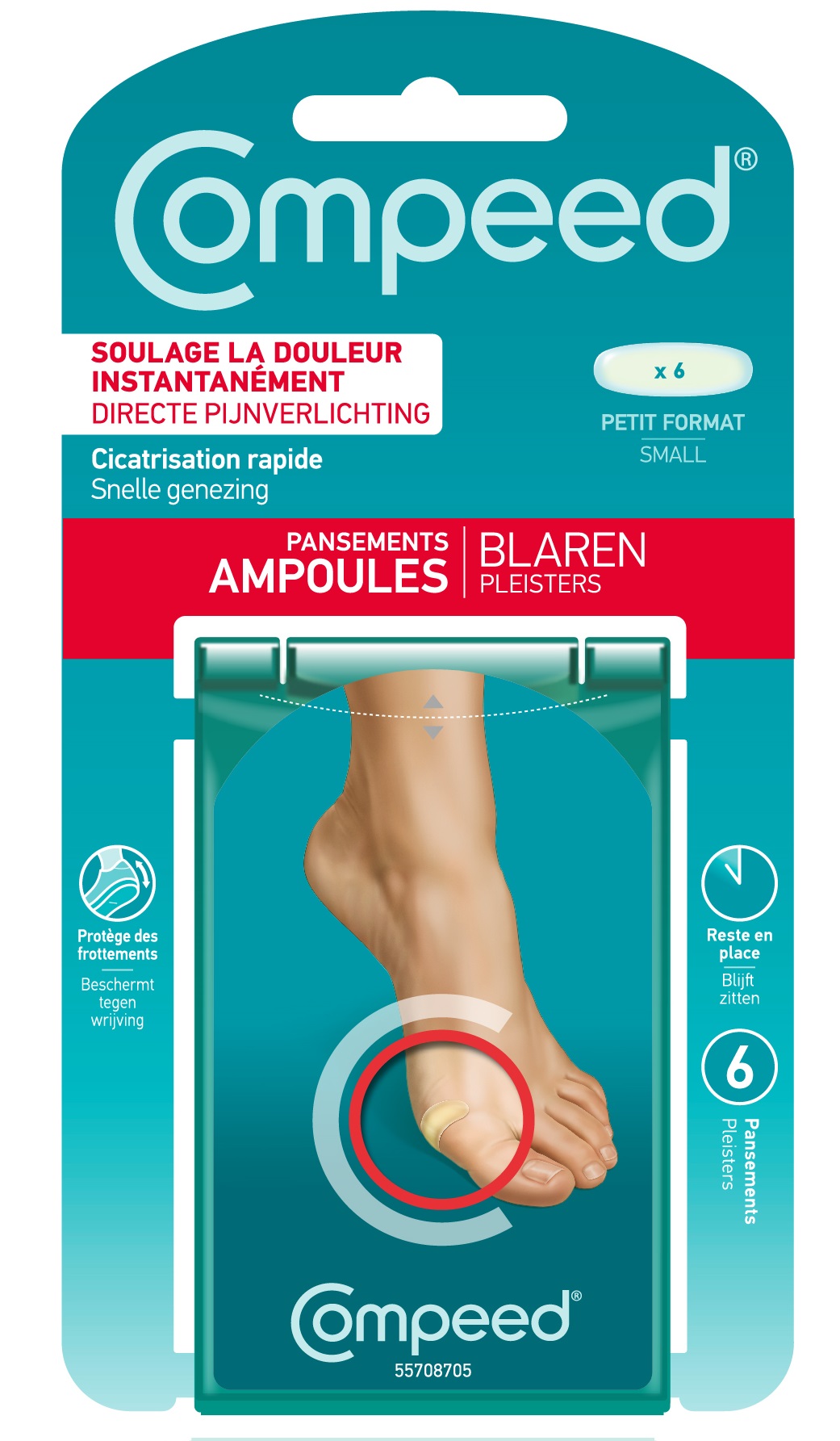 Les pansements ampoules Compeed permettent de soulager la douleur causée par la pression ou les frottements grâce à l'effet coussinet et favorisent la cicatrisation des ampoules. Une fois posé, le pansement agit comme une seconde peau et offre un soulagement immédiat ! C'est un pansement adhésif, transparent et impérméable.