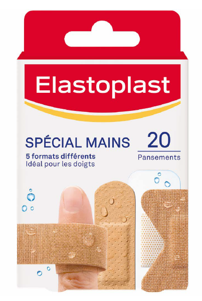 Les pansements Elastoplast possèdent 5 formats différents spécialement pour les blessures de la main. Ils sont waterproof et permettent de protéger les blessures des éléments extérieurs. Ils sont sans latex mais l'emballage des pansements waterproof en contient.
