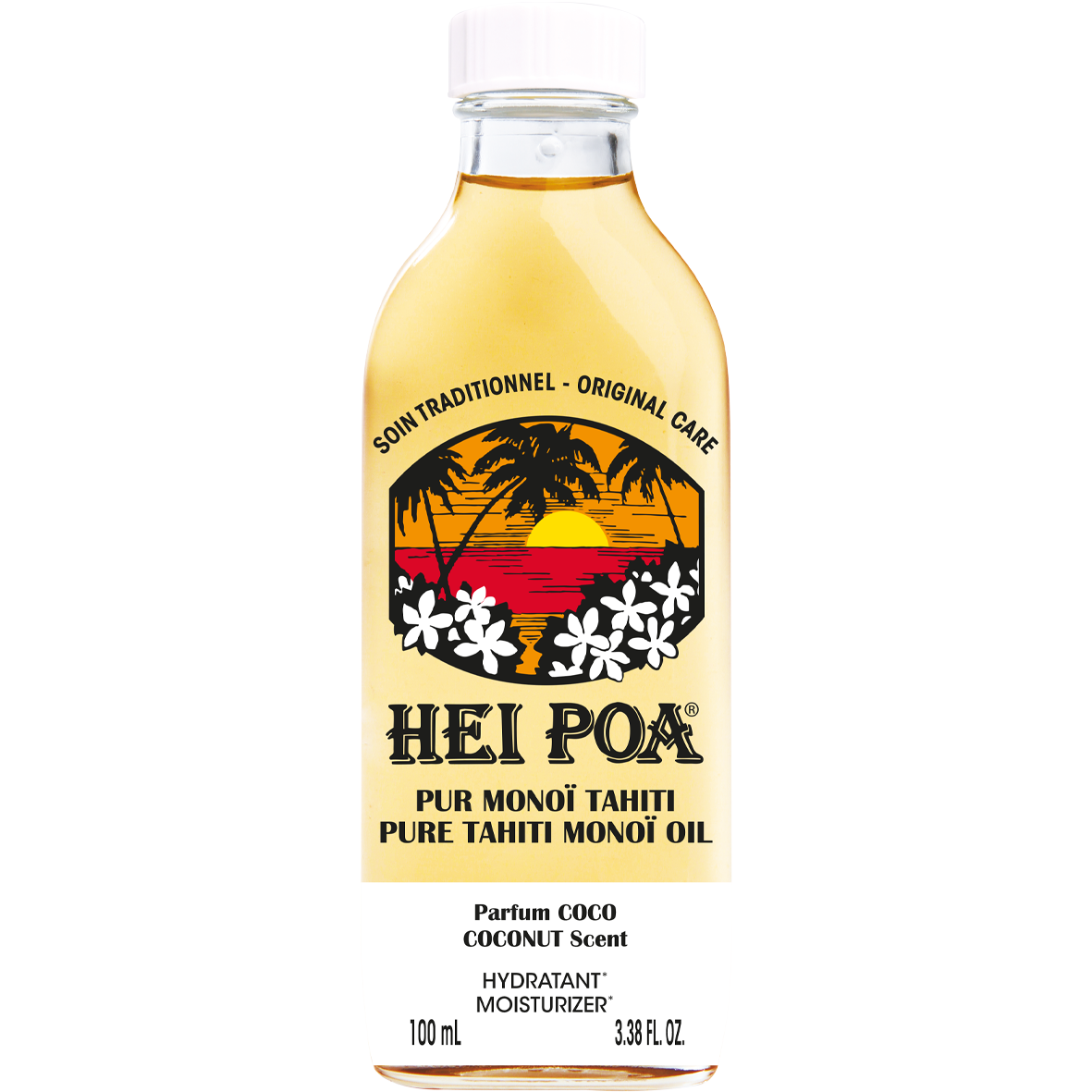 L'huile de monoï pur parfum coco d'Hei Poa hydrate, nourrit et répare le corps et les cheveux. La peau est apaisée et le bronzage est sublimé.