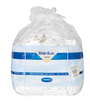 Les cotons Rectangles Sterilux pads permettent d'effectuer les soins d'hygiène à la maison.