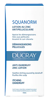 • La LOTION au ZINC ANTIPELLICULAIRE SQUANORM favorise l’élimination des pellicules.