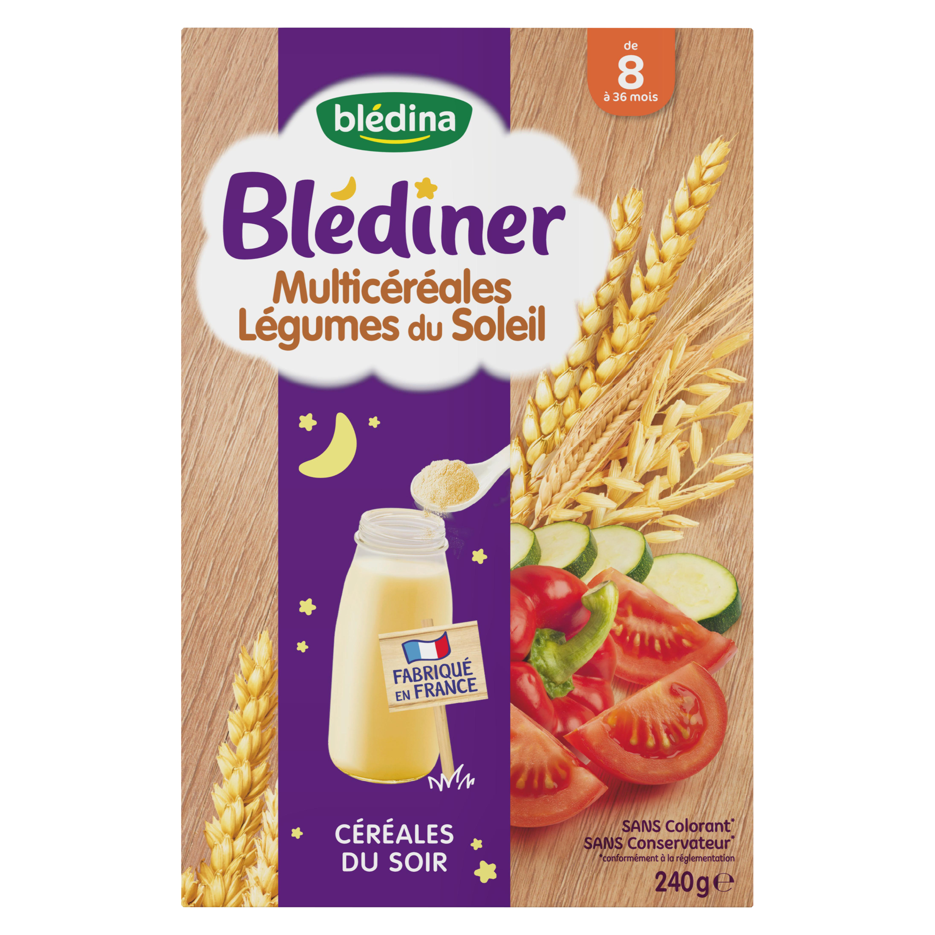 Les Céréales Blédiner®, de savoureuses recettes pour le dîner de bébé! Elles permettent d’introduire le gluten en douceur, avec leur texture onctueuse qui passe à la tétine. Bébé peut savourer le bon goût des légumes sans sel ajouté !