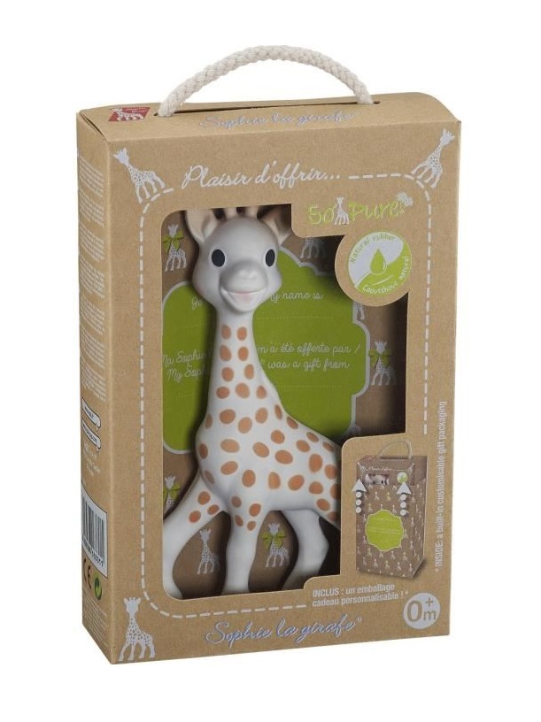 Sophie la girage So'pure est un jouet pour bébé qui stimulera ses sens. Sa jolie boîte est idéale pour offrir et contient un emballage cadeau personnalisable pour la naissance de bébé.