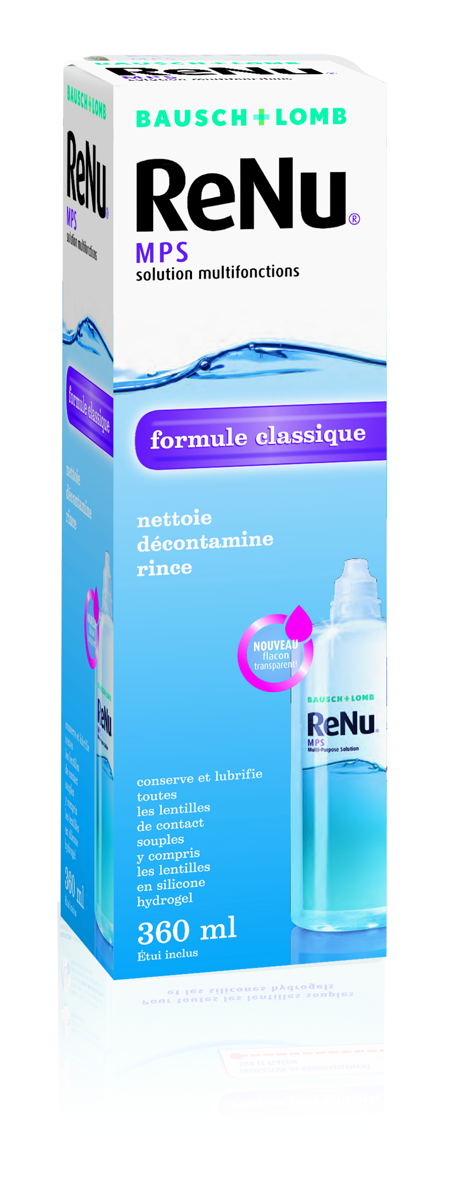 La solution Renu MPS nettoie, décontamine, rince, conserve et lubrifie vos lentilles de contacts souples.