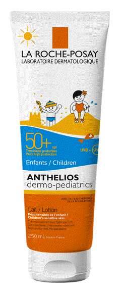 Le lait solaire Anthelios dermo-pediatrics pour enfants est conçu pour protéger la peau des coups de soleil mais également des dommages cellulaire liés aux UV, il offre une très grande protection UVB et UVA dû à l'eau thermale.