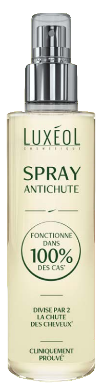 Le spray antichute de Luxéol combat la chute de cheveux et permet de diviser par 2 la chute. Sa formule aux extraits de pousse de pois et de chou marin à une efficacité cliniquement prouvée pour des cheveux plus denses et fortifiés. Le spray est fabriqué en France.