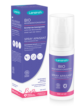 Le spray Lansinoh apaise et soulage les douleurs du périnée post-naissance. Il s'applique facilement.