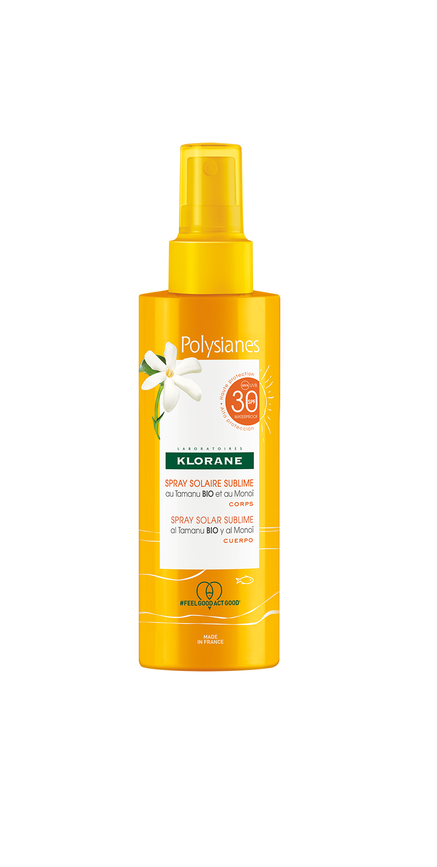 Le spray solaire de Klorane au Tamanu Bio et au Monoï est une protection solaire SPF30. Elle est légère, fraîche et hyratante pour une peau satinée et protégée des rayons UV du soleil. Sa formule est résistante à l’eau et photostable. Fabriqué en France avec un emballage composé de plastique recyclé et recyclable.