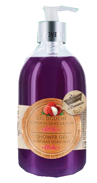 Le gel douche surgras sans savon parfum Litchi nettoie de façon efficace et douce tous les types de peaux.