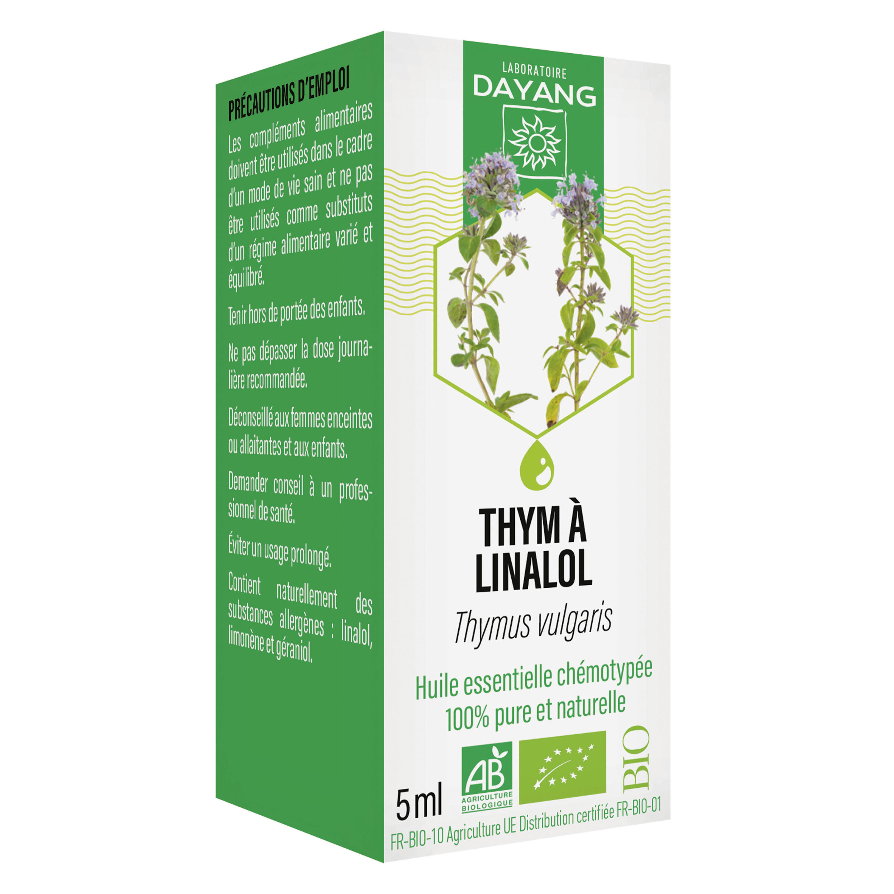 L'huile essentielle de Thym à Linalol est une huile essentielle chémotypée 100% pure et naturelle. Conditionnée en France. Les ingrédients sont issus de l'agriculture biologique certfifié par ECOCERT France.