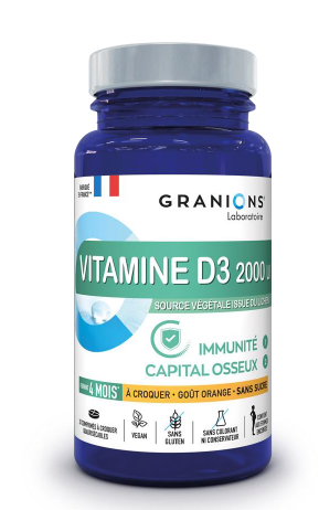 GRANIONS PILULIERS Vitamine D3 2000 UI Boite de 30 comprimés à croquer